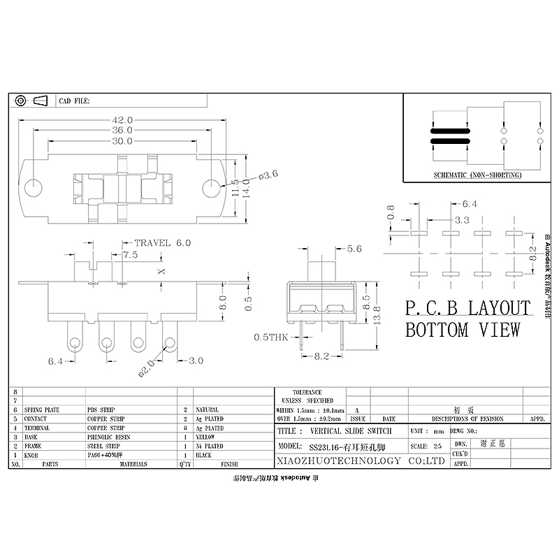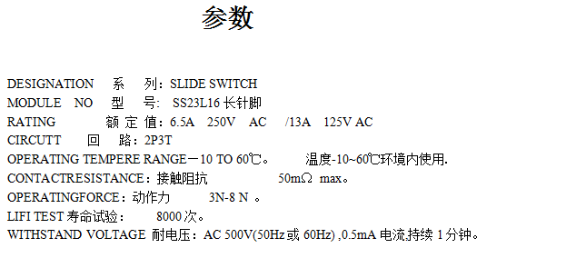 拨动开关SS23L16-有耳短孔脚